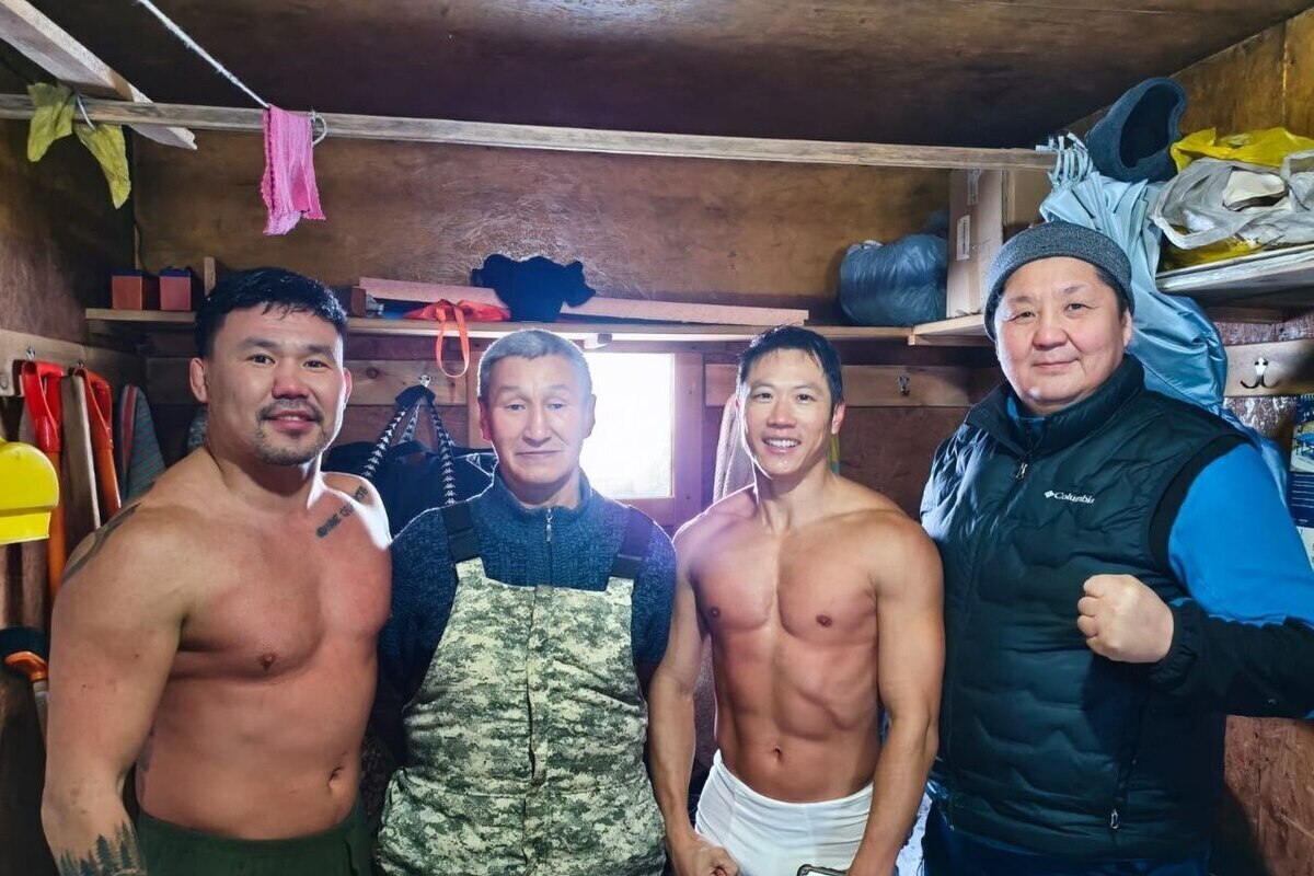 В Якутск прибыла экспедиция путешественников из Китая под руководством популярного блогера Хая Фенга. Сегодня он удивил всех, окунувшись в реку Лена при температуре воздуха -44 градуса. На снимке, сделанном во время этого смелого поступка, Хай Фенг изображён вторым справа.